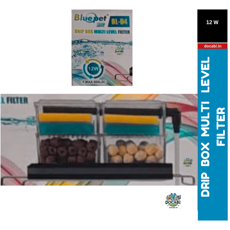 • (1pc),DRIP BOX Multi Level Filter-BL-D04-(Power:-12W|F MAX:800L/H)(Mechanical Filtration for Salt Water and Fresh Water) WITH SPONG & Filtration Media