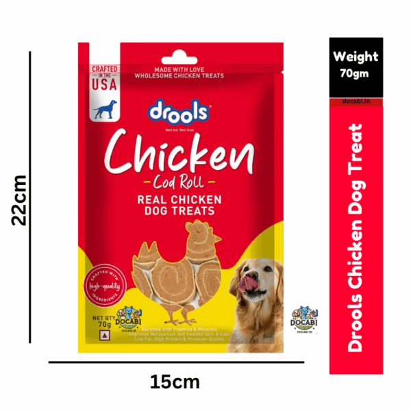 Drools -Real Chicken Cod Roll- Dog Treat 70gm is made with real chicken & fish and is a great reward for your dog.