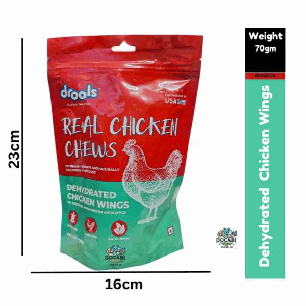 (1pc) 70gm,Drools Dog Treats -Dehydrated Real Chicken Chews Wings
