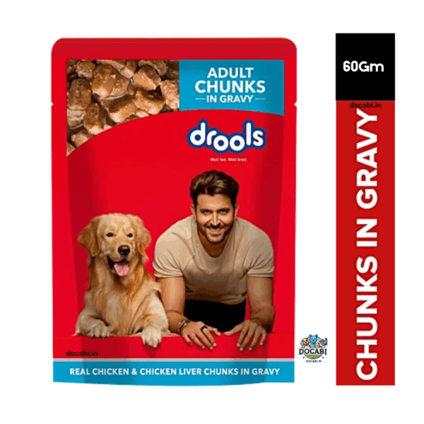 (1pc),(60gm)Drools Adult Gravy wet dog food -Real Chicken chunks in gravy