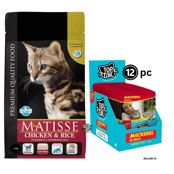 The Matisse Premium Dry Cat Food is a complete food for cats and it features Salmon & Tuna as their main ingredients.