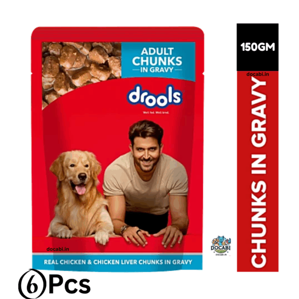 6pcs,150gm Drools Adult Gravy Wet Dog Food Real Chicken and Chicken Liver Chunks , (0.9 Kg)