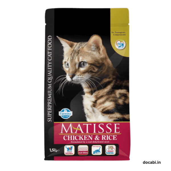 Matisse is a premium and complete food for your feline. Matisse Premium Dry Cat Food is rich in taurine and highly digestible. It has a controlled pH level and features chicken as the key meat protein.