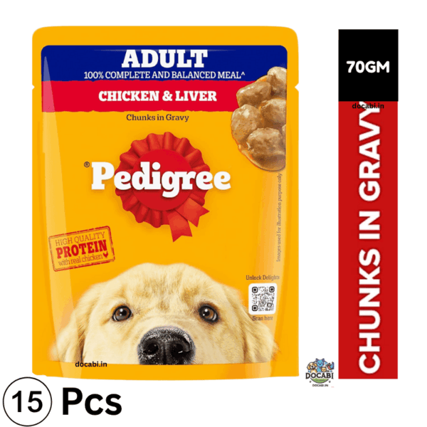 (15pcs),70gm Pedigree Chicken and Liver Chunks in Gravy Adult Dog Wet Food