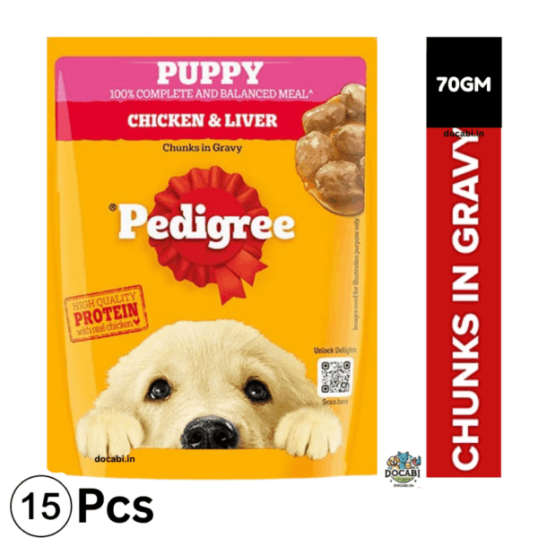 | Size / Flavour | 1 box (15pc), 70 gm, chicken, dog, gravy, pack of 15, puppy |