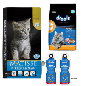 (combo)(1pc)(1.5kg), Farmina Matisse Kittin 1-12 months Dry Cat Food + (1pc) 3Kg drools chicken cat food + (2pc) Drools Creamy treat 30gm